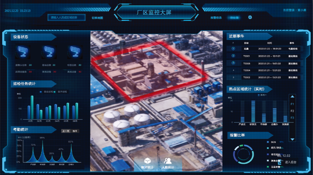 通過預先在某空間安裝好定位基站,基站與標簽相互通信以TOF(飛行時間)、TDOA(到達時間差)、AOA(到達角)的定位算法解算標簽位置,最終將裝配了標簽的人員、車輛、物資位置信息投射到顯示終端。