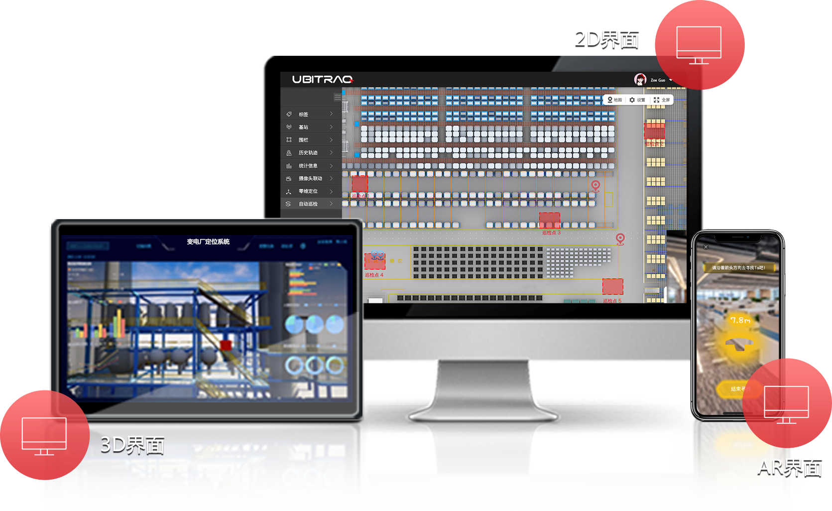 全跡科技自研高精度室內外定位系統,基于UWB(超寬帶)技術實現厘米級室內定位。